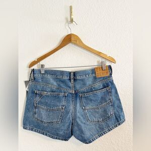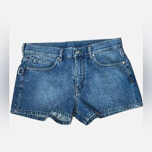Not your average shorts with a crystal studded detail. New with tag. Waist 16.5, rise 10.5, inseam 2.7”.