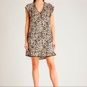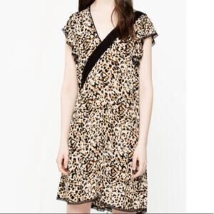 Zadig & Voltaire ringo leo leopard crinkle lace trim dress sz XS