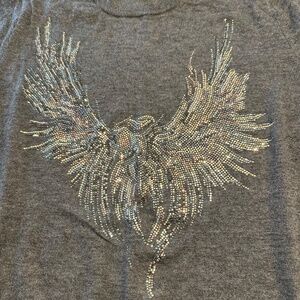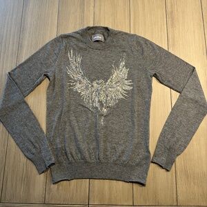 Grey 100% cashmere sweater with appliqué phoenix multi rhinestones. Excellent condition, size small