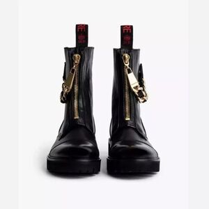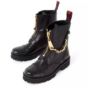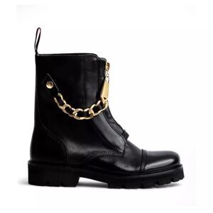 Zadig & Voltaire Joe Cecilia Black Smooth leather boots size 37 gold chain NIB