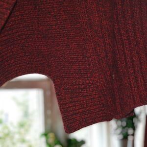 • Shawl collar with chevron patch, drop shoulders, long sleeves with contrast-color stripes