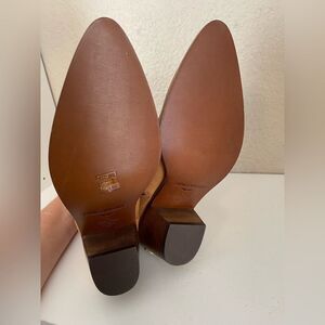 Edgy pointed toe western boot by French designer. Beautiful caramel colored suede bootie. New with box. Questions? Leave a comment below!