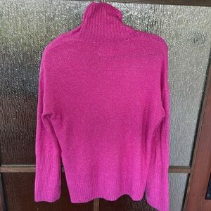 Stay cozy and stylish with this vibrant pink turtleneck sweater. Perfect for any casual outing.