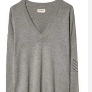 Zadig and Voltaire Happy Army Studded Elbow V Neck Sweater L