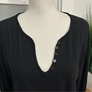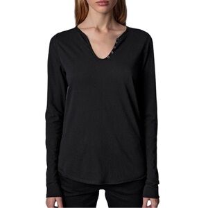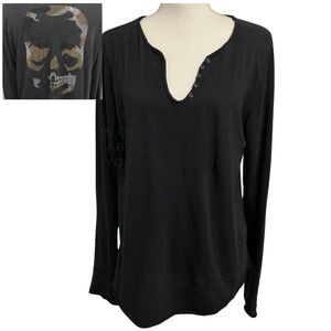 Zadig and Voltaire Tunisien Skull Henley Cotton Top Large Black Designer Grunge