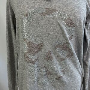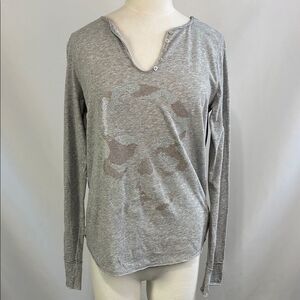 Zadig and Voltaire Gray Button Neck w Skull Top