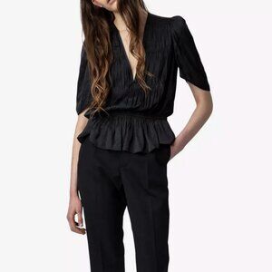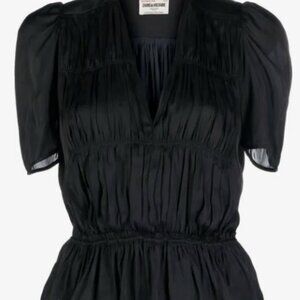 Zadig and Voltaire short-sleeve tokyo silk ruched blouse