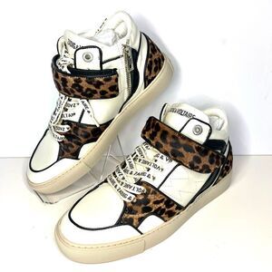 Zadig&Voltaire Mid Flash leopard-effect sneakers Logo Laces Sz 8 (39) NIB