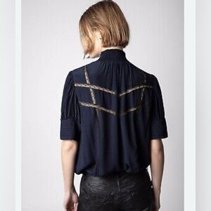 Zadig&Voltaire navy top with black lace detailing. Ruched mock neck. Fits size xs/s. Excellent condition never worn.