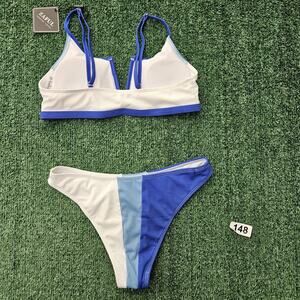 [147] The product is a Zaful 2 piece bikini in size medium and it comes in a multicolor design. This bikini set is designed specifically for women and is made with regular sizing in mind. The style of the bikini includes two pieces, making it easy to mix and match the different tops and bottoms to create different looks. Ideal for those looking for a comfortable and stylish swimwear option.