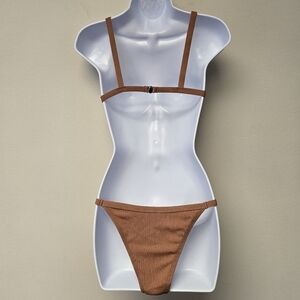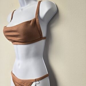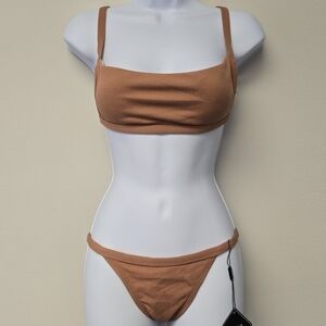 Zaful Bandeau 2 piece Ribbed Bikini Set Orange Salmon L