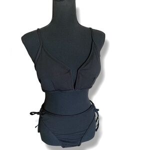 Zaful Black Sporty Bandeau Triangle Bikini Set Women’s Size XL 12-14 NWT Goth