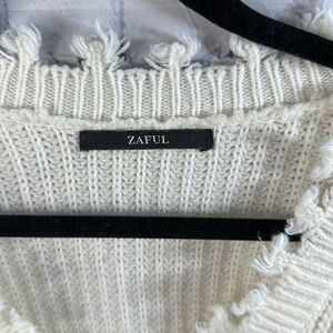 🧥 Zaful Cream Frayed Cropped Sweater - Size Small