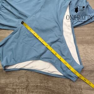 A most charming aquatic ensemble in a fetching shade of blue, this tankini presents an artfully designed cross-front detail with a delightful keyhole flourish that shall surely capture the admiration of all who behold it. The comfortable stretch fabric ensures both propriety and ease of movement, whether one is taking a genteel dip or promenading along the shore. A perfectly agreeable addition to any lady's summer wardrobe, offering both elegance and the utmost in seaside comfort.