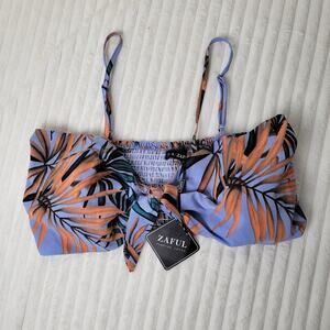 Zaful Forever Young Bikini Top – US Size 10 – Tropical Print – NWT – Ruched Back