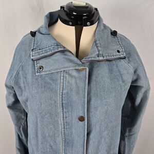 Zaful Forever Young Denim Jacket Women's XXL Lt Blue Zip Snap Patch Collar NWT