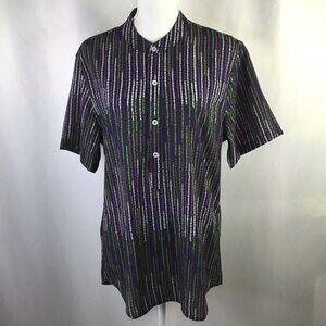 Zaful Forever Young NWT Top Blouse Size M Short Sleeve Longer Back Black Print Lightweight