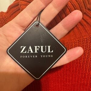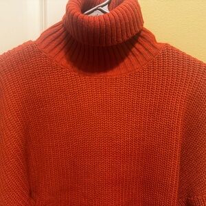 Zaful Forever Young Orange Cropped Turtleneck Dropped Shoulder Sweater Sz 8