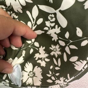 Elegant olive bikini with white floral design. Perfect for beach days.