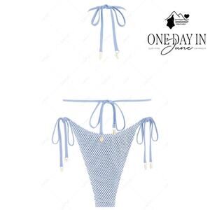 This azure swimsuit captures the essence of summer elegance with its high-cut silhouette and delicate tie details at both sides and back. The vivid blue hue evokes endless ocean horizons and cloudless skies, while the thoughtfully designed ties create a flattering feminine form. A perfect companion for those golden afternoons spent poolside, this piece embodies both sophistication and playful charm.