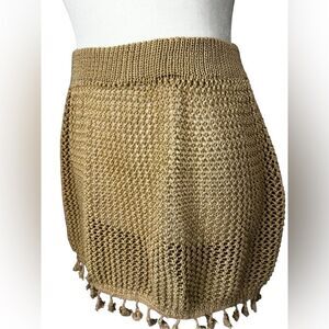 Zaful Knit cover up skirt size Small Sand color with tassle trim 14” long 26” waist In great condition!