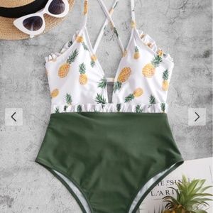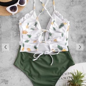 Zaful Lace-up Frilled Pineapple One-piece swimsuit