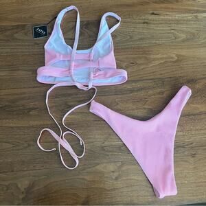 Zaful Pink Ribbed Cross back bikini Both size XL NWT No flaws Adjustable straps and back