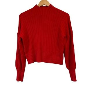 Zaful Red Ribbed Crop Long Sleeve Sweater, Medium