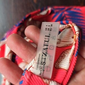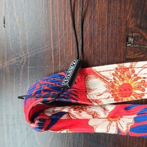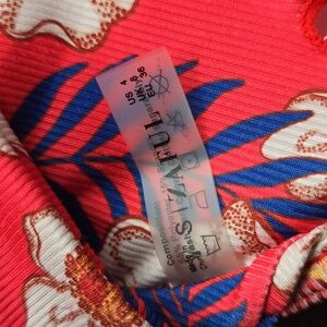 Stylish Zaful bikini set in red with blue stripes. Features a floral pattern for a chic look.