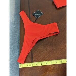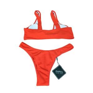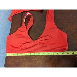 Zaful Ribbed Bikini Swimsuit Set Size 6 Red Light Padding Knot Front Deep VNeck