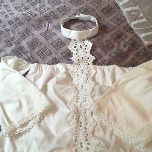 New without tags off white choker blouse. Lightweight, never been worn. Tiny spot on back in last photo.