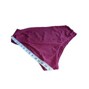 Zaful Swim Bikini Bottom Womens Sz 12 Burgandy High Waist Stretch Tummy Control