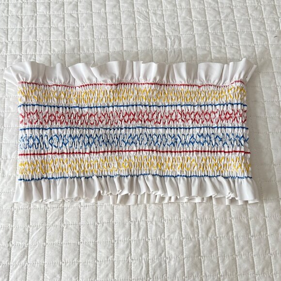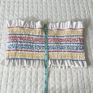Zaful Swim White Ruffled Smocked Bandeau Bikini Top US 6 M Multicolor Pattern Ny