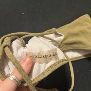Stylish bandeau bikini top. Features adjustable ties. Perfect for beach days.