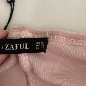 Zaful Tank Top Cami Feather Trim Pink Velvet Size 8 NWT