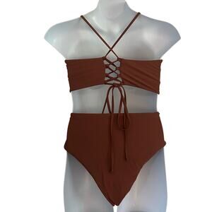 Zaful Twisted Lace Up Back High Waisted Two-Piece Padded Bikini L Large New