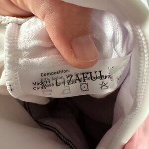 Zaful Women's US 8-10 One Piece Swimdress Swimsuit Color Block V-Neck Wrap Tie Side Bathing Suit NWT. 82% Nylon, 18% Spandex.