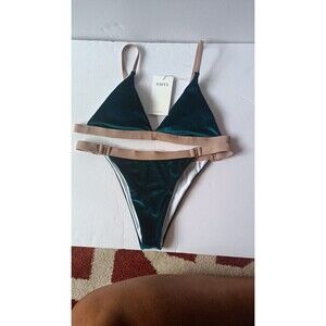 Zaful Velvet Bikini Set Size Large 2 Piece Emerald Green Triangle Top Cheeky New