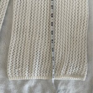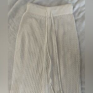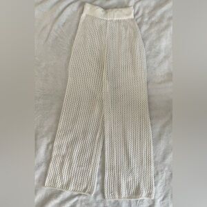 Cozy knit pants with adjustable drawstring. Ideal for relaxed outings. Worn once but in good condition! Small stain on leg shown in photo. Pants stretch to 15in. Recommend for size small