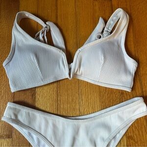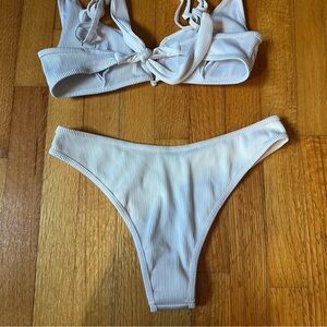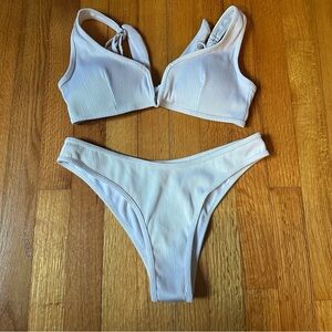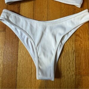 Zaful White Ribbed Padded Wired Bikini Size 6 Swimwear Set (T)