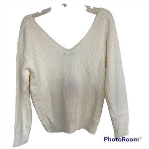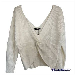 Zaful White V-Neck Criss Cross Pullover Long Sleeve Knit Sweater In A Size 8 !