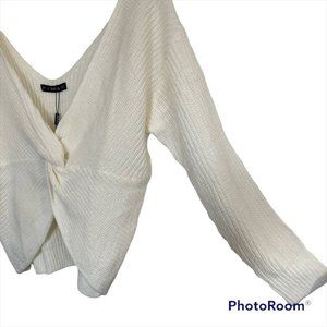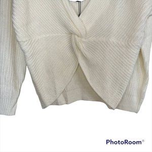 Zaful White V-Neck Criss Cross Pullover Long Sleeve Knit Sweater Size 8