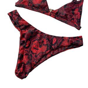 Zaful Women Small Cobra Collection Snakeskin High Cut V Neck Swimsuit Bathing
