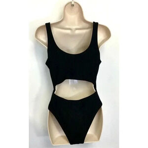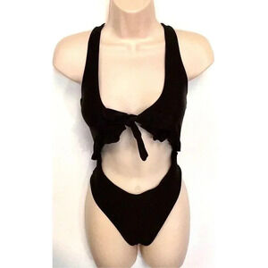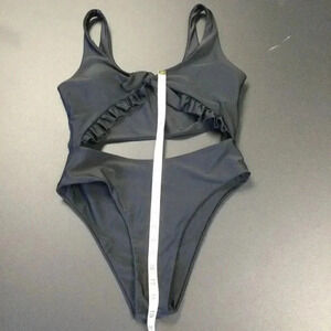 Zaful Womens Black Cut Out Ruffle Trim High-Waisted One Piece Swimsuit Size 8