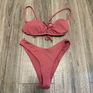 Zaful Women’s Dark Red Key Hole Bandeau Bikini Size S Cheeky Bottoms