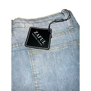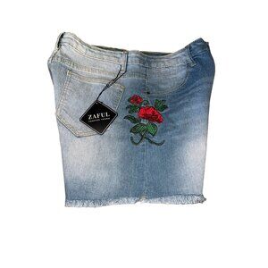 Zaful Womens Denim Shorts W/ Rose Embroidery Frayed Hem Size 4 Light Wash Cotton