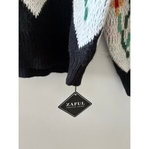 Zaful Womens Pullover Knit Sweater Size Small Black Floral Crewneck NWT