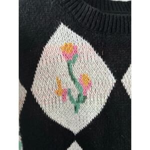 Zaful Womens Pullover Knit Sweater Size Small Black Floral Crewneck