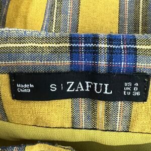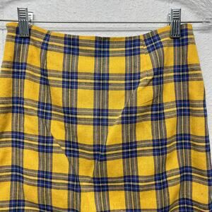 Zaful women's plaid mini skirt in blue, pink & yellow. High waisted. Hidden side zipper. Lightweight. Lined. Woven fabric. In good used condition. No stains, tears or holes.