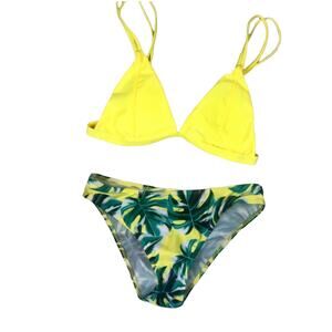 Zaful Pink Tropical Hawaiian Leaf Pattern Bikini. Cute Triangle Bikini with Tropical Palm Leaf Detail. Tiny Triangl Bikini Coconut Girl Vibes. Adjustable Straps + Lightly Padded with Removable Pads.